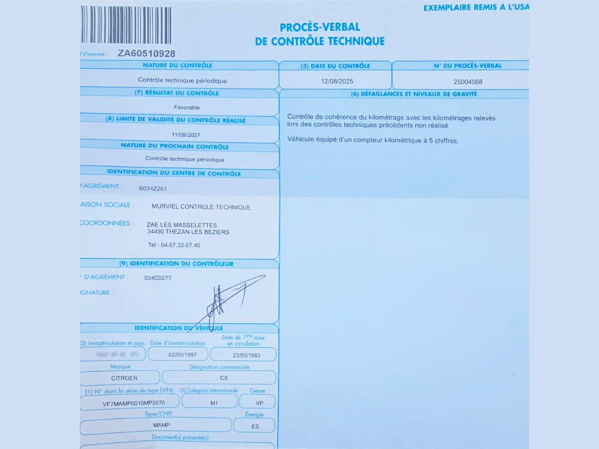 >> Zéro defaut lors du dernier contrôle technique datant d'août 2025.