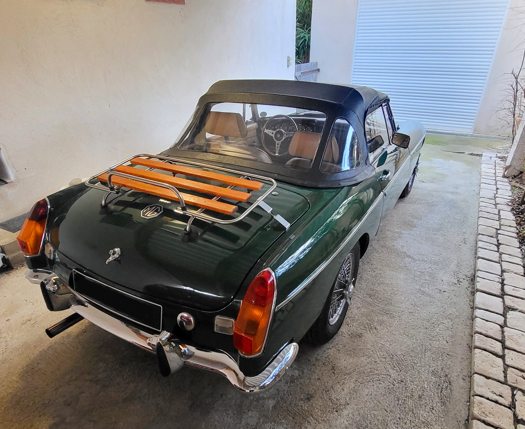 Cette très belle MGB de 1971, arbore une élégante et classique teinte British Racing Green associée à un intérieur beige