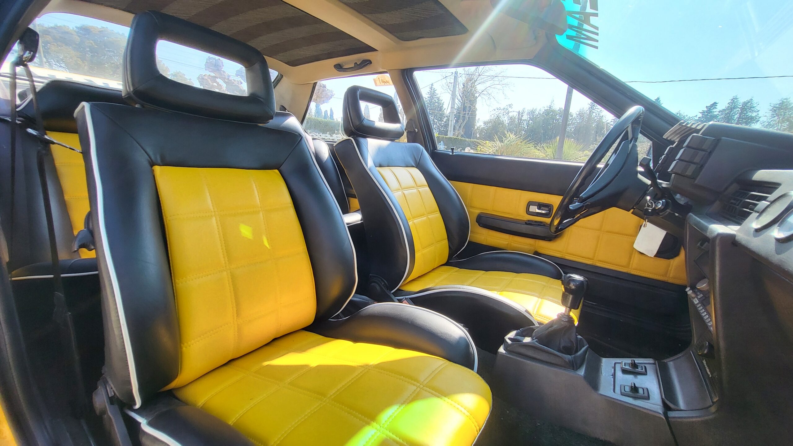À l'intérieur, l'habitacle a été soigné avec des sièges refaits à neuf en simili-cuir bicolore, offrant un confort ferme et un look résolument sportif.