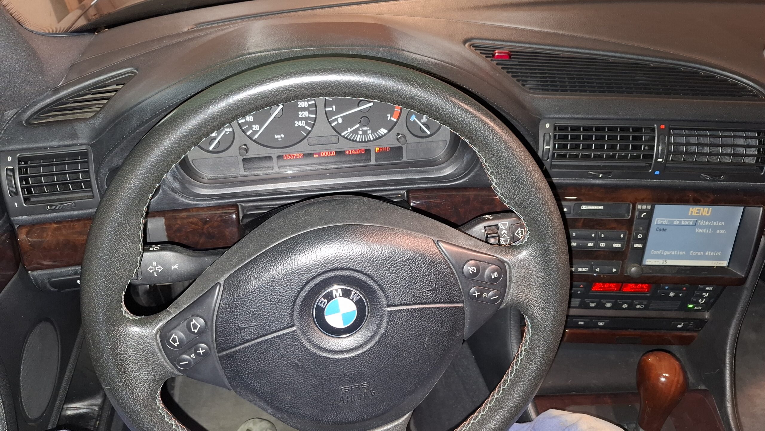 Son équipement est à la hauteur des meilleures berlines de l'époque, calandre typique BMW, un tableau de bord avec inserts en bois , toit ouvrant électrique, sièges en cuir, chauffants, réglables électriquement avec mémoire, Suspension pneumatique système EHC entièrement révisée pour un confort optimal.