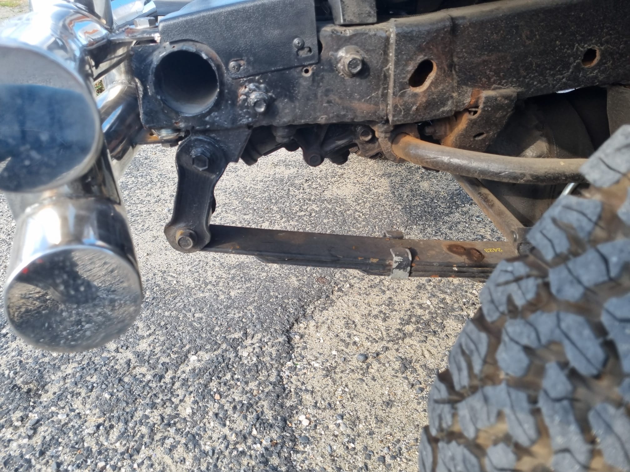 Le châssis du CJ sert de base avec une longueur augmentée, les ressorts à lame toujours présents sont seconder par des barres stabilisatrices afin d’améliorer la tenue de route et le confort.