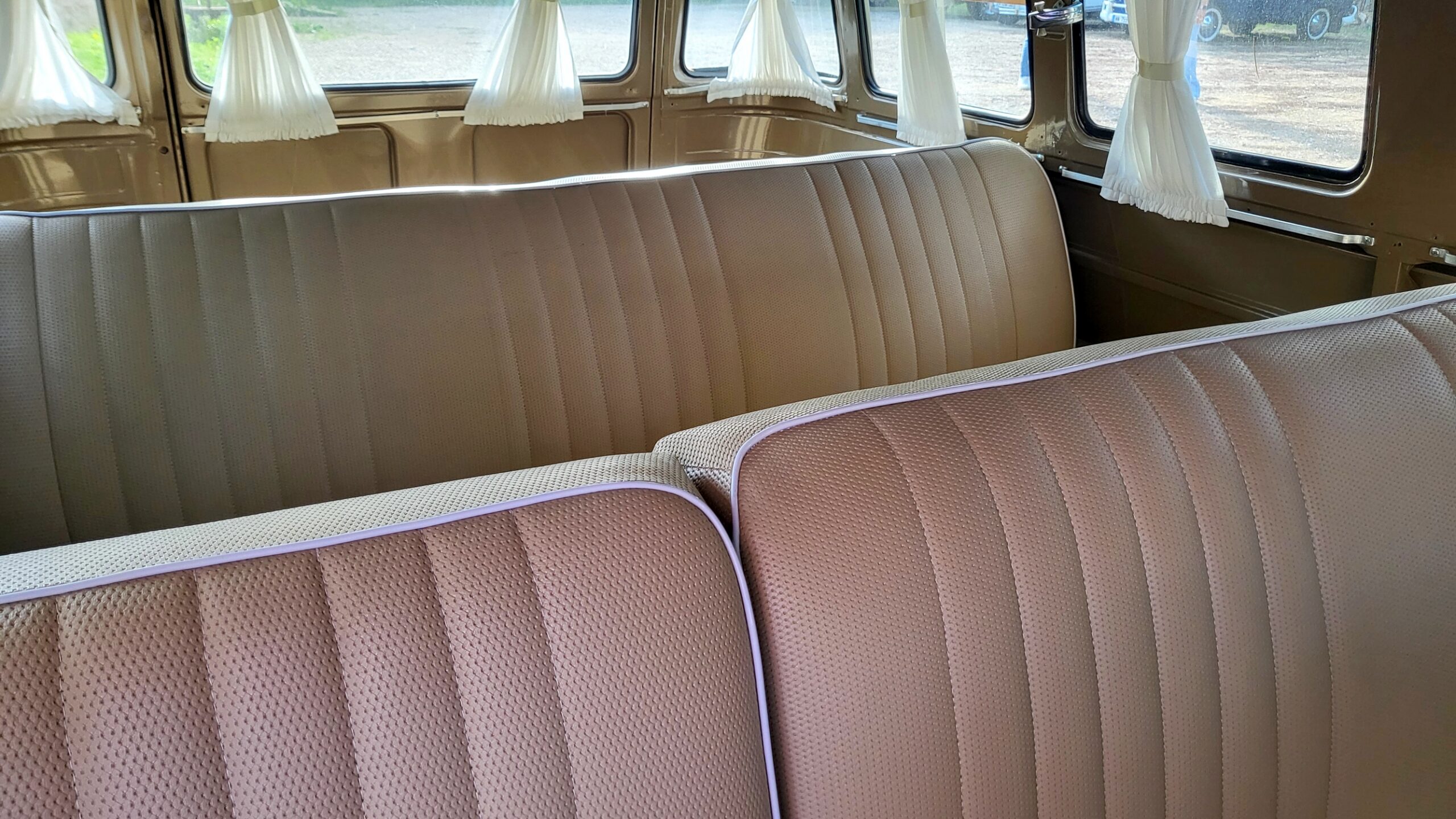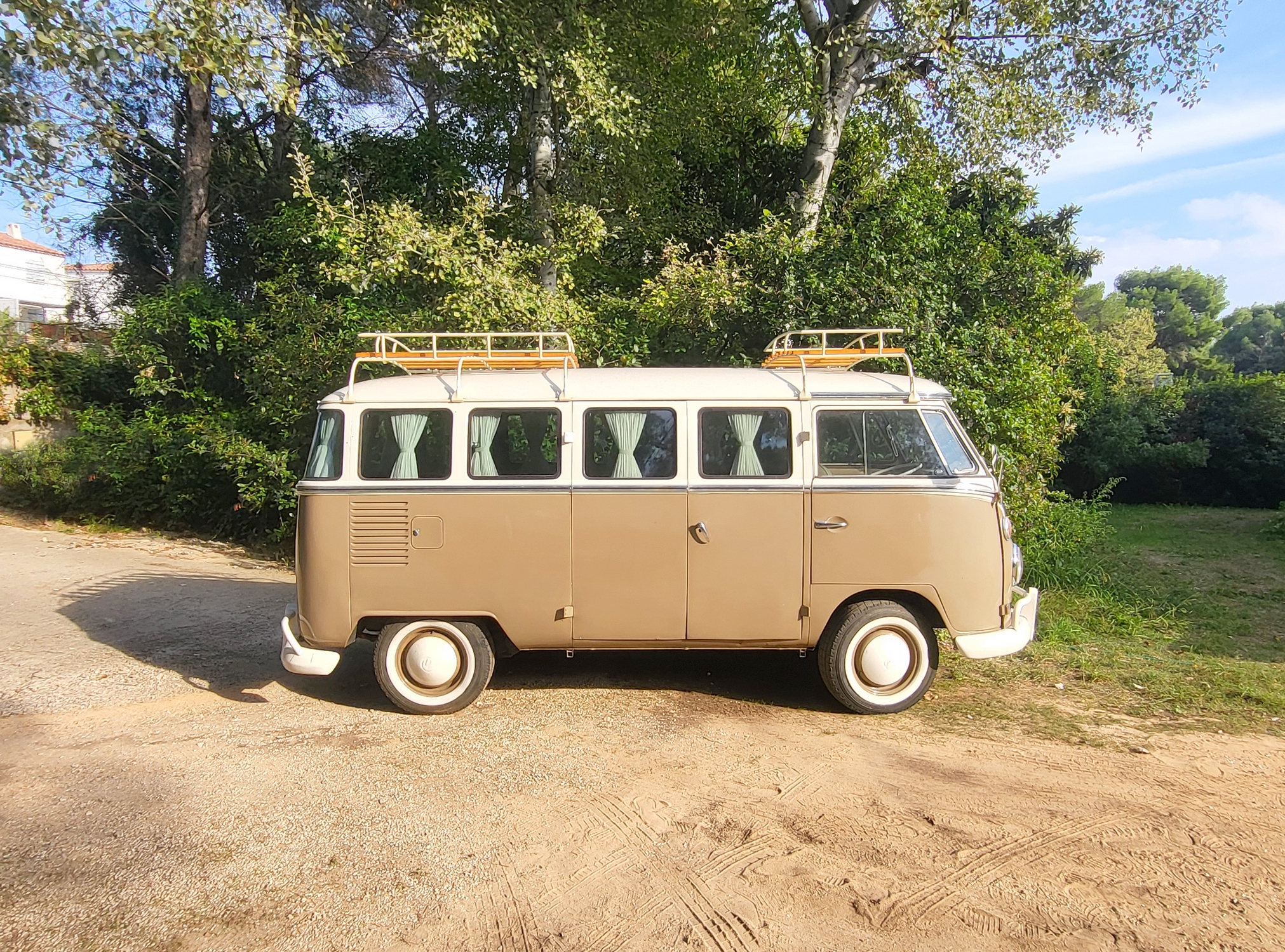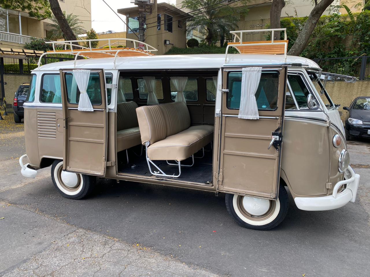 Dans sa configuration bicolore beige et blanc, avec ses célèbres vitres avant Split Window, ce modèle est une invitation immédiate au voyage et à l'aventure.